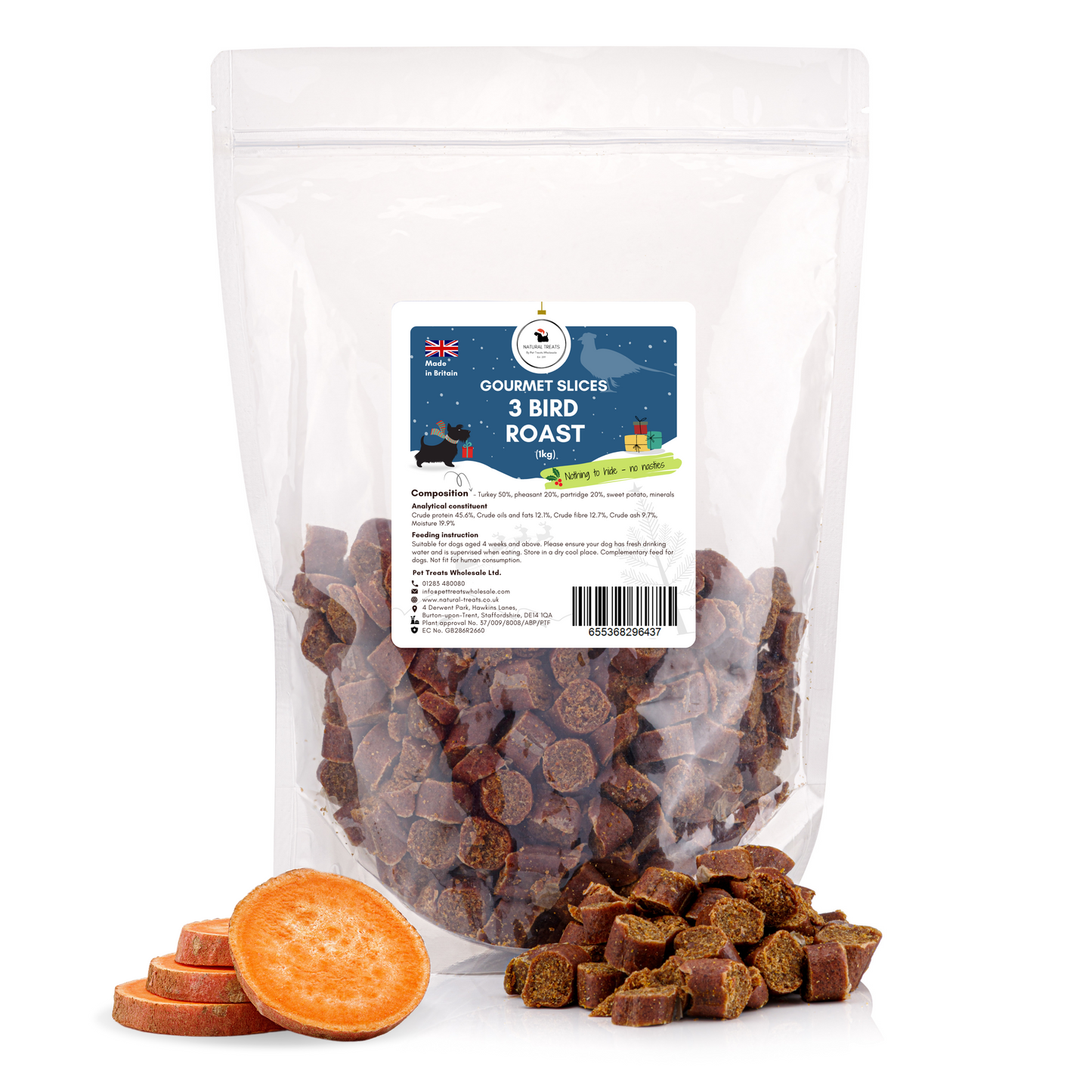 Our Gourmet Slices are not only delicious but they're healthy too! Ideal for dogs of all breeds and sizes, they're also perfect as training treats for dogs with allergies, digestive issues or a sensitive stomach.